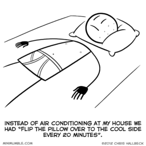 Posts tagged air conditioning 1 results#100 – HeatBy Chris on May 4, 2012 at 12:00 amChapter: ComicTags: air conditioning, pillow, sweat