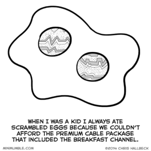 Posts tagged cable TV 1 results#524 – ScrambledBy Chris on June 9, 2014 at 12:00 amChapter: ComicTags: cable TV, eggs, scrambled eggs